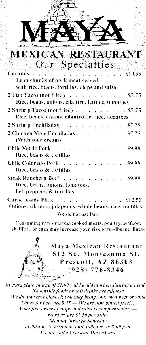 Stepping into Maya Restaurant is like finding a hidden corner of authentic Mexican warmth right in the heart of Prescott. The atmosphere unfolds with a casual, inviting rhythm where the hum of conversation blends effortlessly with the sizzle and aromas rising from the kitchen. It’s a place where the pace slows just enough to savor a moment—whether you’re sharing a plate with friends or grabbing a quick, satisfying bite after a day out exploring.